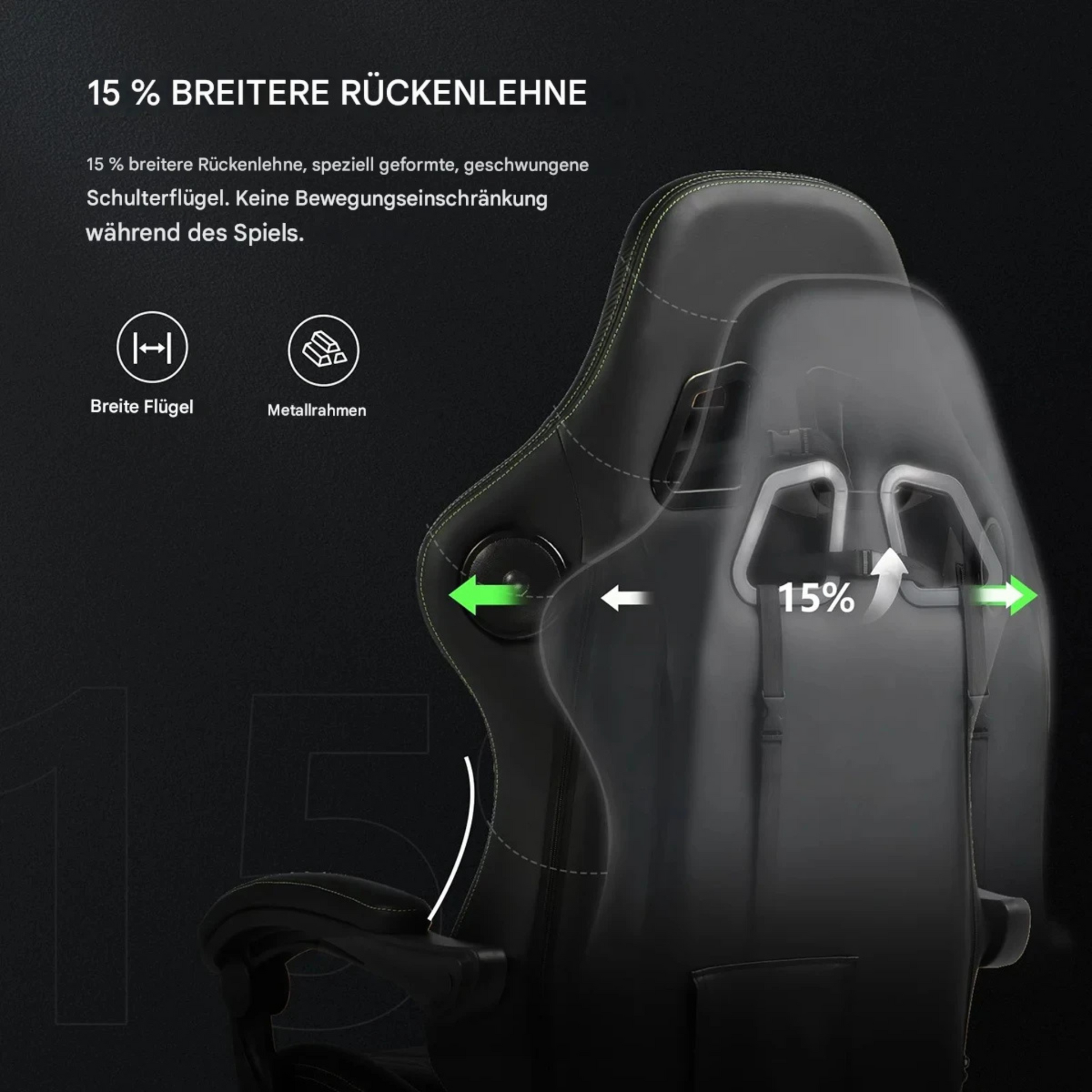- 15 % breitere Rückenlehne mit geformten Schulterflügeln – mehr Bewegungsfreiheit